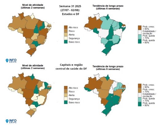 Divulgado nessa quinta-feira (7/8), o novo Boletim InfoGripe da Fiocruz (Fundação Oswaldo Cruz) constatou que os casos de Síndrome Respiratória Aguda Grave (SRAG) entre as crianças, associados ao Vírus Sincicial Respiratório (VSR), permanecem em níveis elevados na maioria dos estados brasileiros. Campo Grande é uma das capitais em alerta. O InfoGripe é uma estratégia do Sistema […]