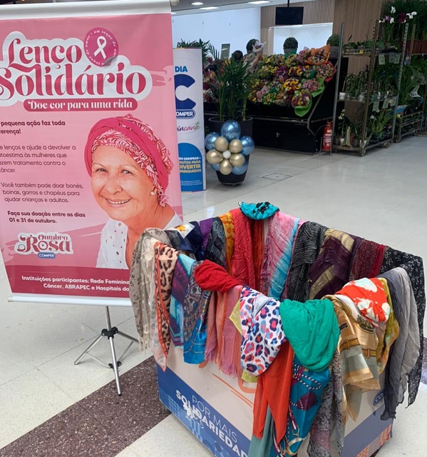 Iniciativa do Grupo Pereira promove arrecadação de lenços em diversas lojas da rede Comper e Fort Atacadista para quem enfrenta tratamento oncológico