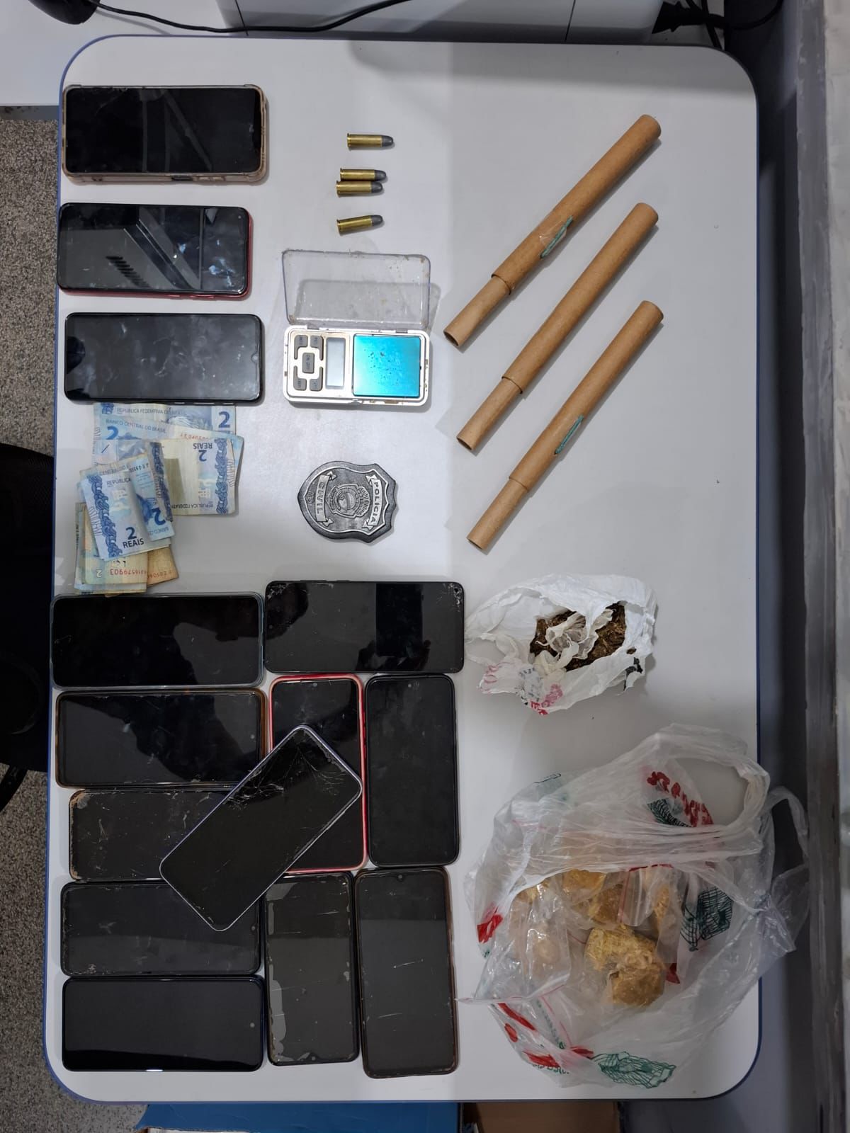 Investigadores durante a busca encontraram 9 celulares que eram aceitos como pagamento pela mercancia ilegal, fato confirmado pela mulher abordada