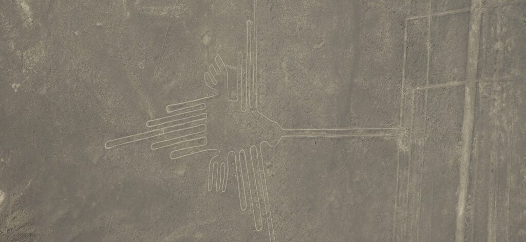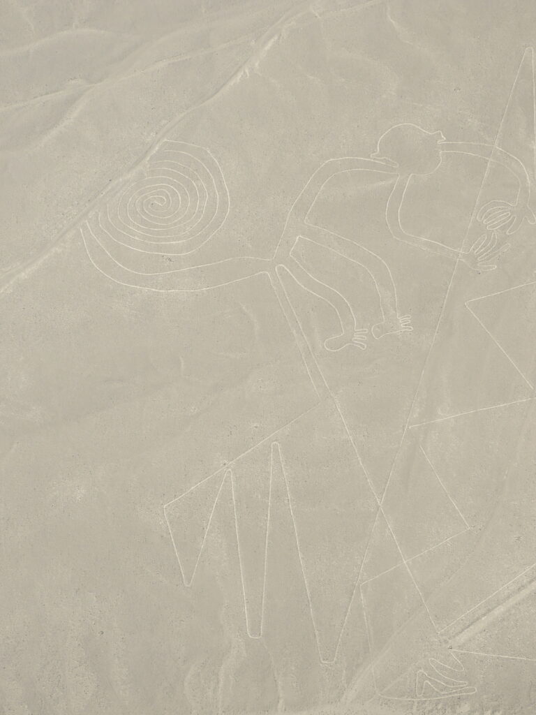 O percurso entre Arica (Chile) e Nazca, no Peru, levou perto de 15 horas, boa parte pela Rodovia Panamericana Sul, que percorre extenso trecho do litoral peruano, margeando o Pacífico. Restando perto de duas horas de viagem, voltamos a topar com paisagens lunares, dessa vez do Deserto de Nazca. Ali, no dia 2 de janeiro, nos aguardava uma das mais marcantes experiências da viagem: sobrevoar a região das Linhas de Nazca, famosa por reunir centenas de geoglifos (desenhos de figuras escavados no solo) enigmáticos que só podem ser vistos, na totalidade de sua imagem, do alto.