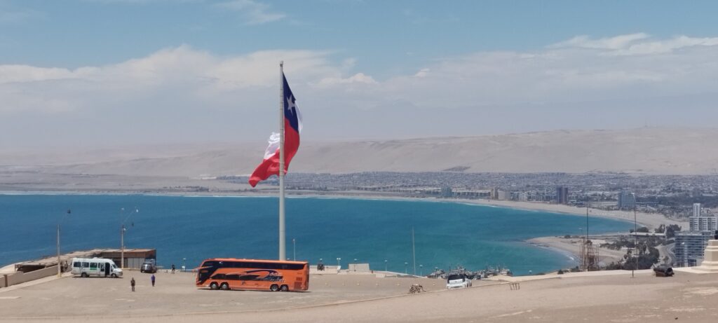 Após um “banho” de deserto (e teríamos mais pela frente), e deslocamentos por vans nas imediações de São Miguel do Atacama, embarcamos na “nave-mãe” (carinhoso apelido que o grupo cunhou para o ônibus) rumo a Arica, no extremo norte do Chile, às margens do Oceano Pacífico. Em resumo, significava sair de uma altitude por vezes superior a 4.000 metros e despencar para o nível do mar, em um percurso aproximado de 700 km. Deixamos São Pedro pouco depois das 23 horas do dia 30 de dezembro e chegamos a Arica no meio da manhã do último dia do ano.