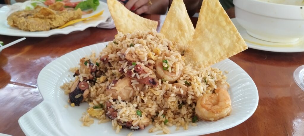 Experimentamos “Ceviche Mixto” (35 soles – com peixe, marisco, lula, polvo, etc.) e “Chaufa de Mariscos” (40 soles – uma espécie de arroz frito com frutos do mar, cebolinha e gengibre). Arredondando para a moeda brasileira, na cotação do período, pagamos R$70,00 e R$80,00, respectivamente. Comida farta, de qualidade e saborosa.