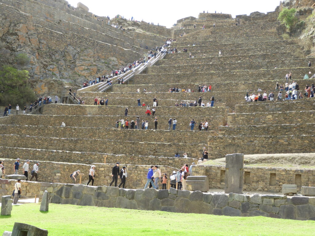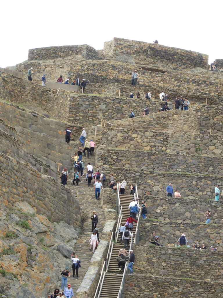 Na parte da tarde, fomos à impressionante Ollantaytambo (70 km de Cusco), uma pequena cidade do Império, da era pré colonial, ainda habitada e que guarda uma monumental obra arquitetônica: as escadarias entre degraus gigantes, uma verdadeira fortaleza com aproximadamente 250 degraus que protege e leva até o Templo do Sol, em sua parte mais alta, construído com enormes rochas monolíticas de granito.