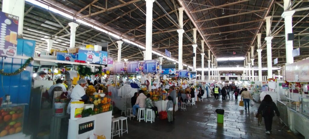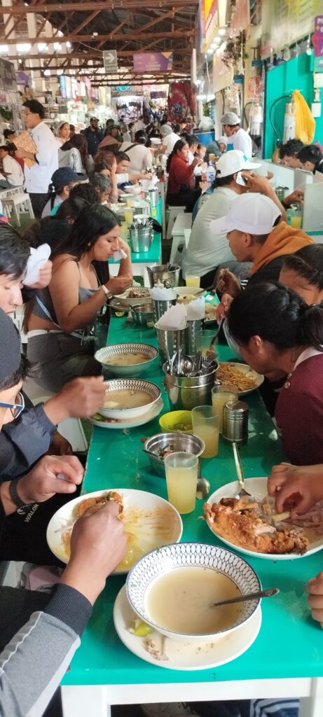 No entanto, a experiência visual dos serviços de alimentação não é atraente. Caldos aguados, alimentos sem acondicionamento/proteção além de uma alta concentração de famintos consumidores em bancos e mesas corridas, não estimulou nosso apetite. A “Alpaca a lo pobre” (filé de alpaca com arroz, abacate, banana, ovo e legumes – prato a R$ 70 no mercado), deixamos para experimentar no jantar (nada espetacular; aliás, longe disso).