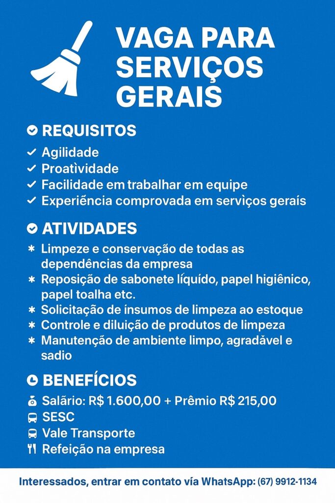 Auxiliar de logística, serviços gerais, recepcionista e outras: confira vagas que abrem a ‘semana de oportunidades’