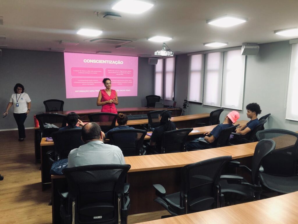 Em alusão à campanha Outubro Rosa, o Instituto PROFAC, ligado ao Sindicato das Empresas de Asseio e Conservação de Mato Grosso do Sul (SEAC-MS), promoveu a palestra “Um toque pode salvar sua vida”, voltada aos colaboradores terceirizados que atuam em unidades do Sesc MS. O encontro teve como foco a prevenção e o autocuidado no combate ao câncer de mama e outras doenças, com orientações sobre a importância do diagnóstico precoce e da atenção constante à saúde.