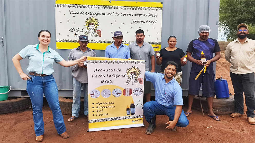 Conhecidos como “O Povo do Mel”, os Ofaié preservam saberes antigos sobre espécies de abelhas nativas — muitas delas nomeadas em sua língua materna. O acompanhamento da Agraer ocorre desde 2021, incluindo três módulos de capacitação em apicultura e meliponicultura conduzidos pela zootecnista Jovelina Maria de Oliveira. As famílias também recebem atendimento contínuo do escritório local e apoio na execução de projetos de comercialização, garantindo geração de renda e segurança alimentar.