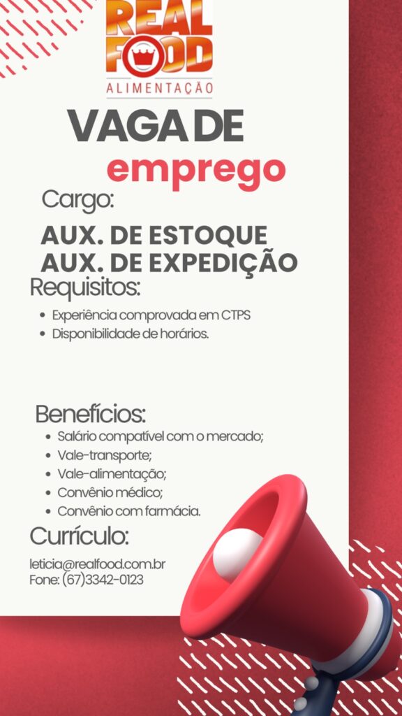 A empresa Real Food Alimentação está com vagas em diversas áreas, oferecendo salário compatível com o mercado e diversos benefícios.