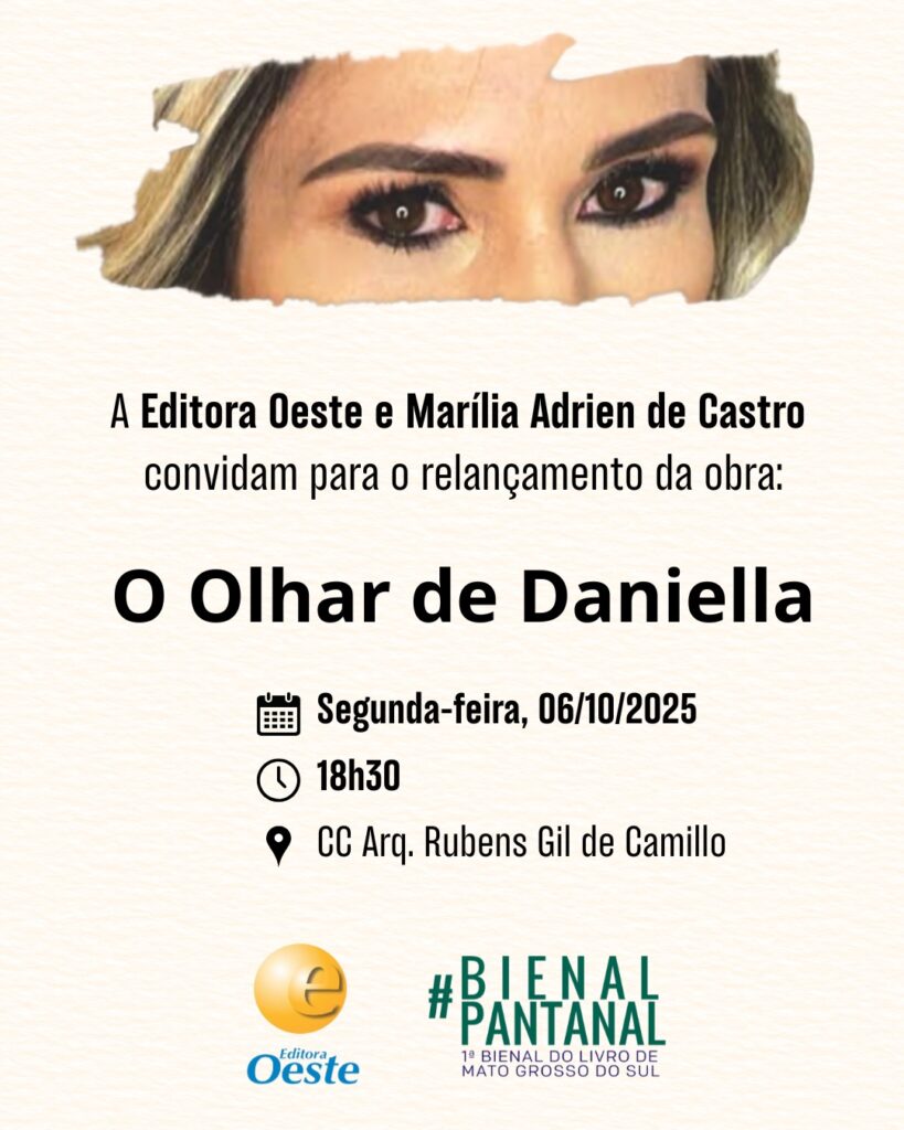 Publicado pela Editora Oeste, O olhar de Daniela terá sua noite de autógrafos no estande da editora, na segunda-feira, dia 6, a partir das 18h30. Para Horácio Porto, editor associado, trata-se de uma obra que não apenas resgata a história de uma vida marcada por afetos, conquistas e fragilidades, mas também enfrenta com coragem temas que ainda são cercados de silêncio e tabu.