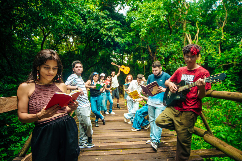 A diversidade das oficinas reflete a própria multiplicidade juvenil. Literatura, cinema, tecnologia, atuação, poesia falada e mediação de leitura convivem na mesma programação.