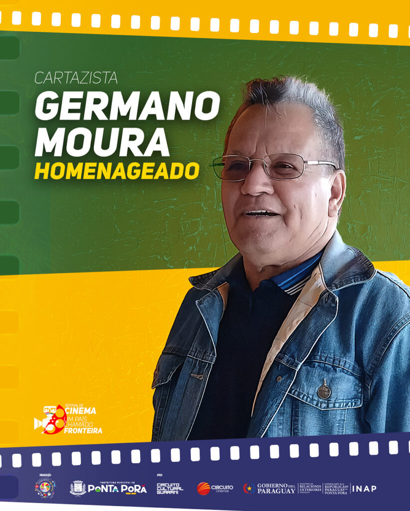 Germano Moura conhecido como GERPA é artista plástico da fronteira Ponta Porã/Pedro Juan Caballero e um dos últimos representantes da geração de decoradores cinematográficos. Desde os anos 1970, antes da chegada das gráficas, foi ele quem deu vida às fachadas dos cinemas de rua, pintando à mão os grandes cartazes que anunciavam os filmes. Seu trabalho acompanhava o ritmo das estreias: quando um título saía de cartaz, o painel era coberto de tinta branca e recebia novas imagens, num ciclo constante de criação efêmera que marcou a memória cultural da região.