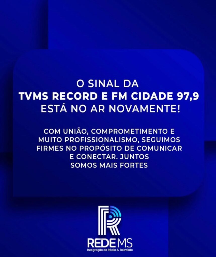 A TV MS Record retomou o sinal após incêndio que atingiu a torre de transmissão, nesse domingo (26), em Campo Grande.