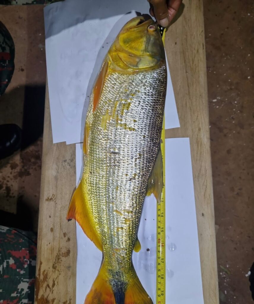 Em posse do autor foram encontrados um exemplar de peixe da espécie Dourado e um exemplar de peixe da espécie Jurupoca, ambos protegidos neste período.