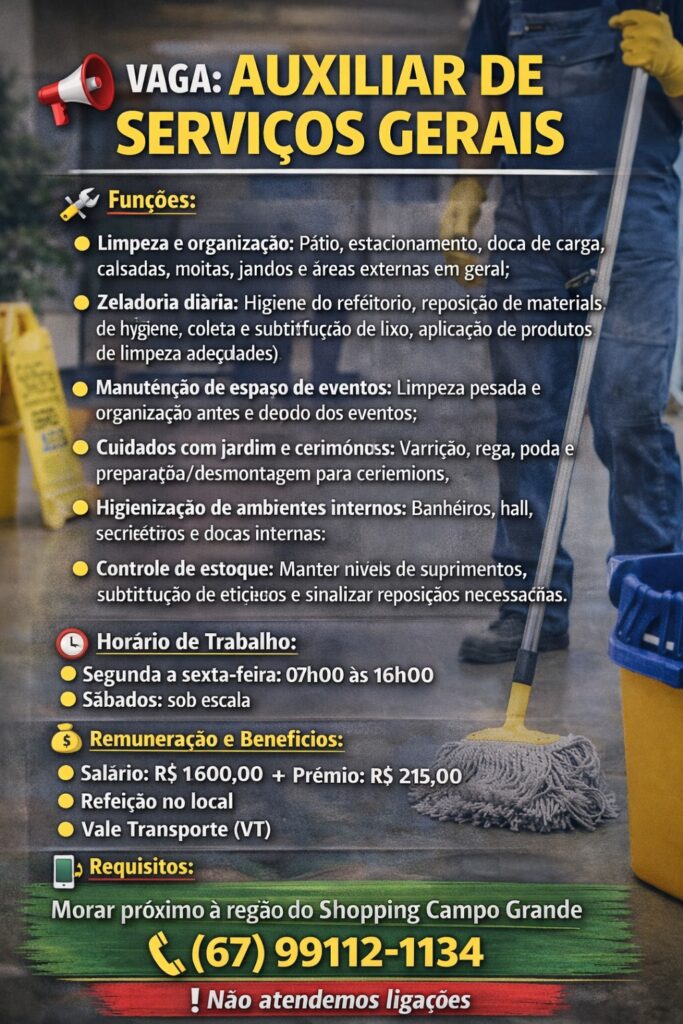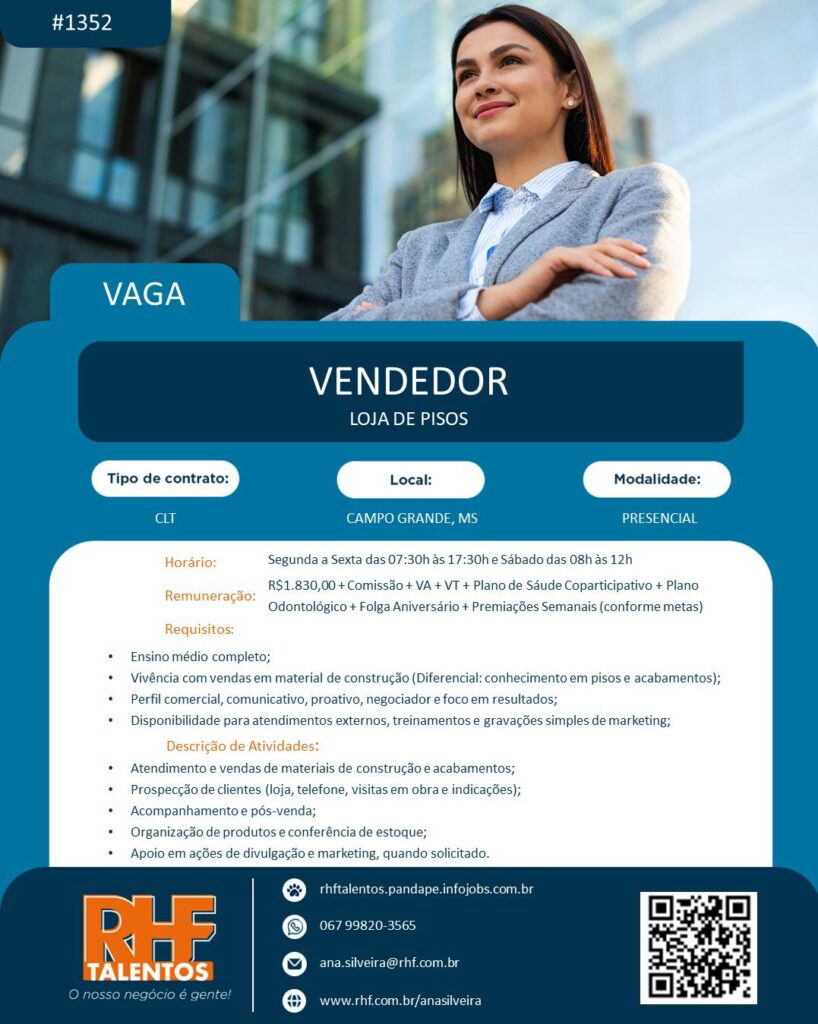 Os benefícios incluem a contratação CLT, salários acima de R$ 3 mil e benefícios. São 19 oportunidades em Campo Grande e no interior do Estado.