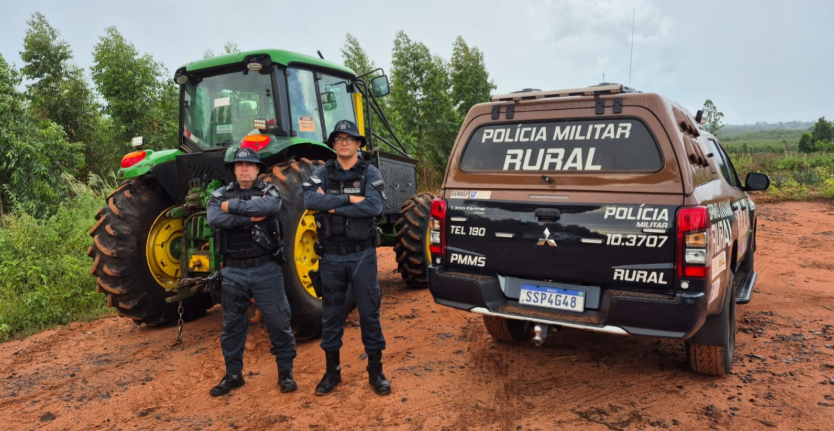 A ação teve início após a equipe policial receber informações de que um trator estaria escondido em meio a uma plantação de eucaliptos, em uma fazenda localizada às margens da rodovia MS-112. Diante da denúncia, os policiais deslocaram-se até o local e, após buscas minuciosas, localizaram o maquinário agrícola, que estava ocultado no interior da vegetação, na tentativa de dificultar sua identificação e recuperação.