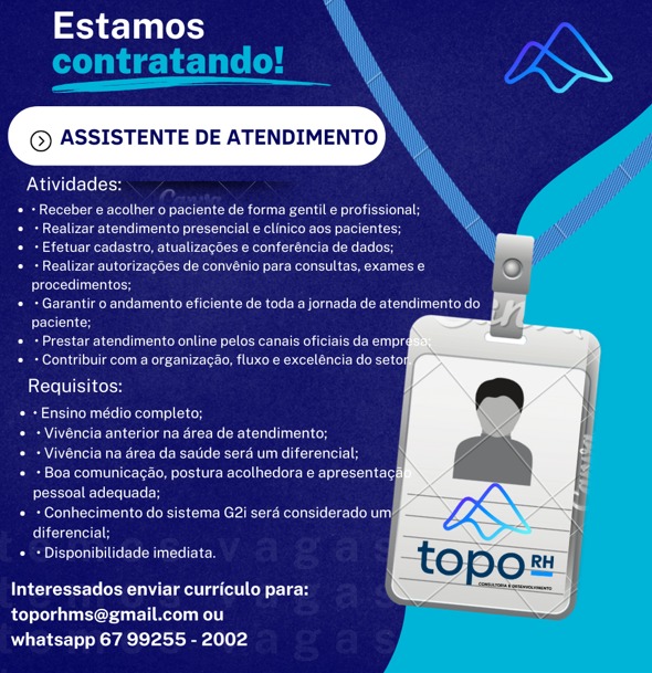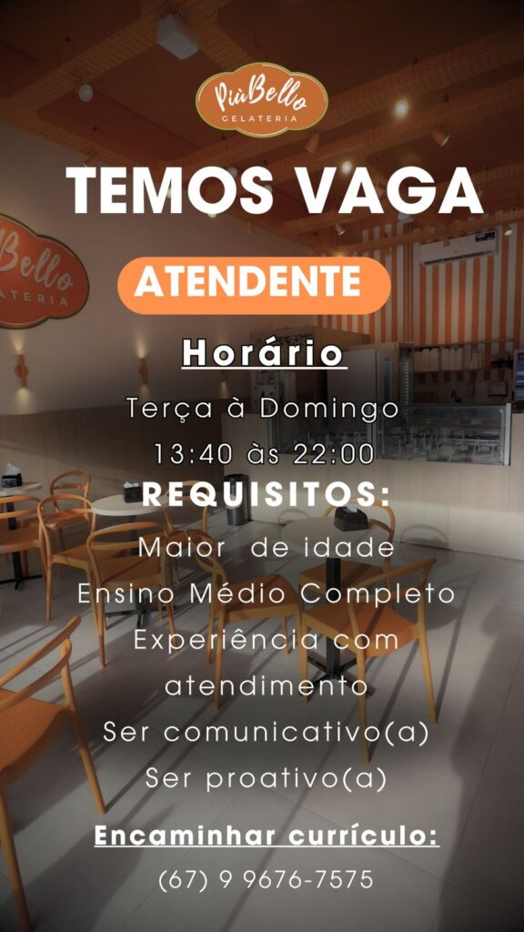 Se a resposta for sim, confira as nove oportunidades selecionadas pelo Made In MS, confira as informações necessárias sobre a vaga e boa sorte!!