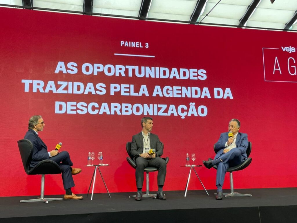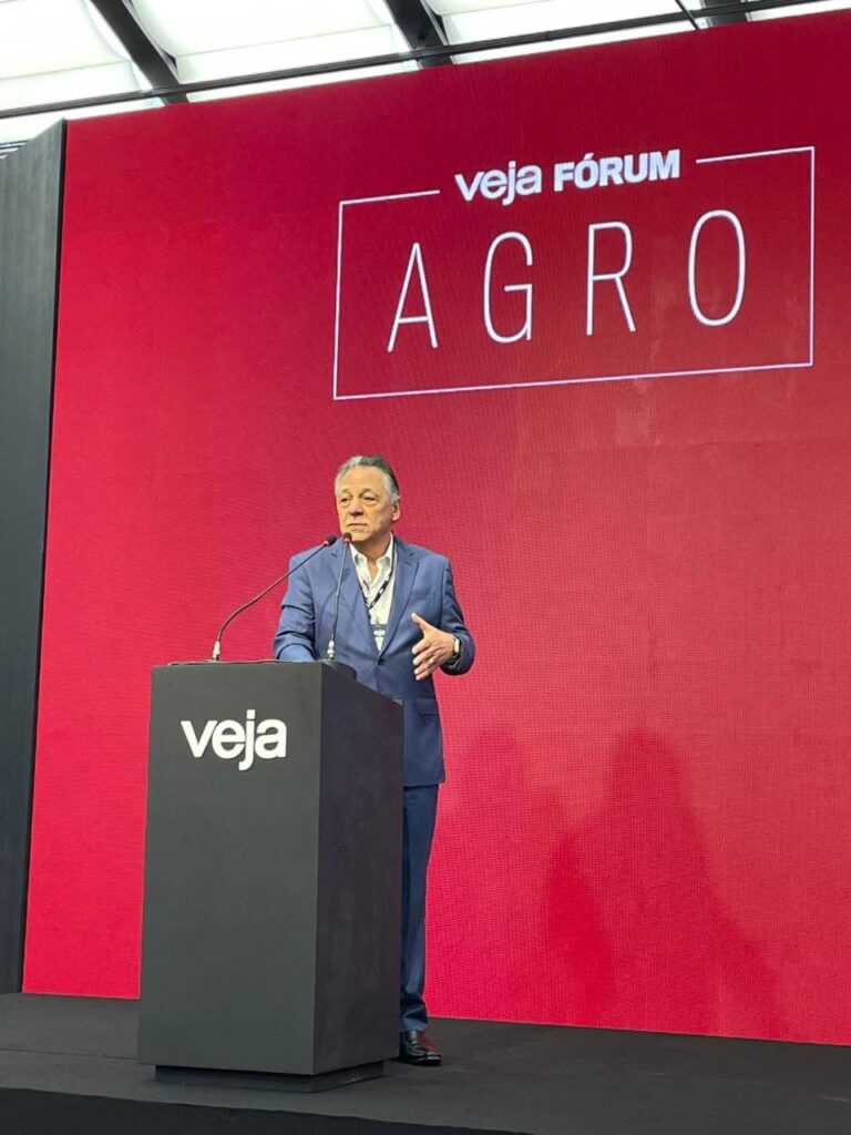 Diretor florestal da Eldorado Brasil, Germano Vieira, no Fórum Agro da Veja, nesta segunda-feira (24) (Foto: Eldorado Brasil/Divulgação).