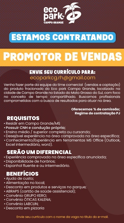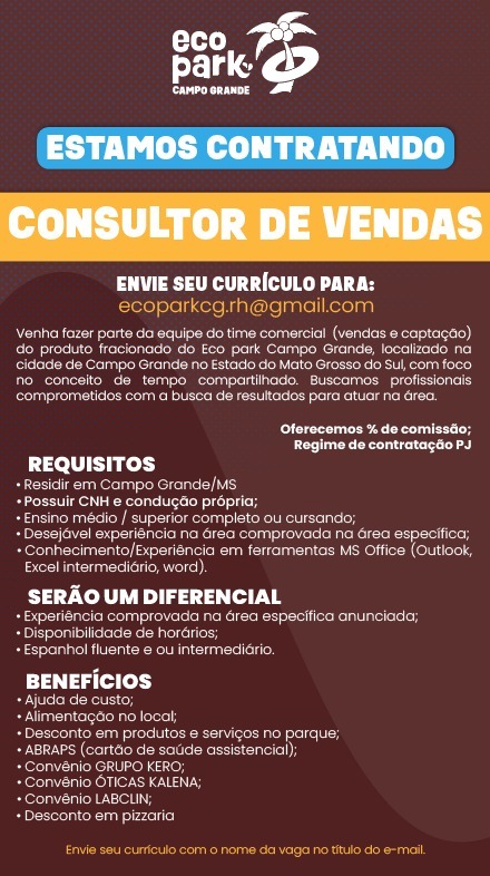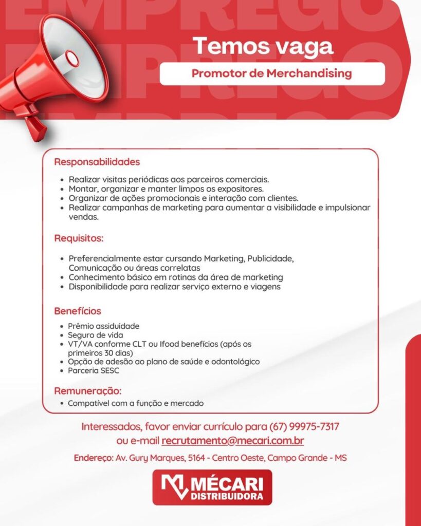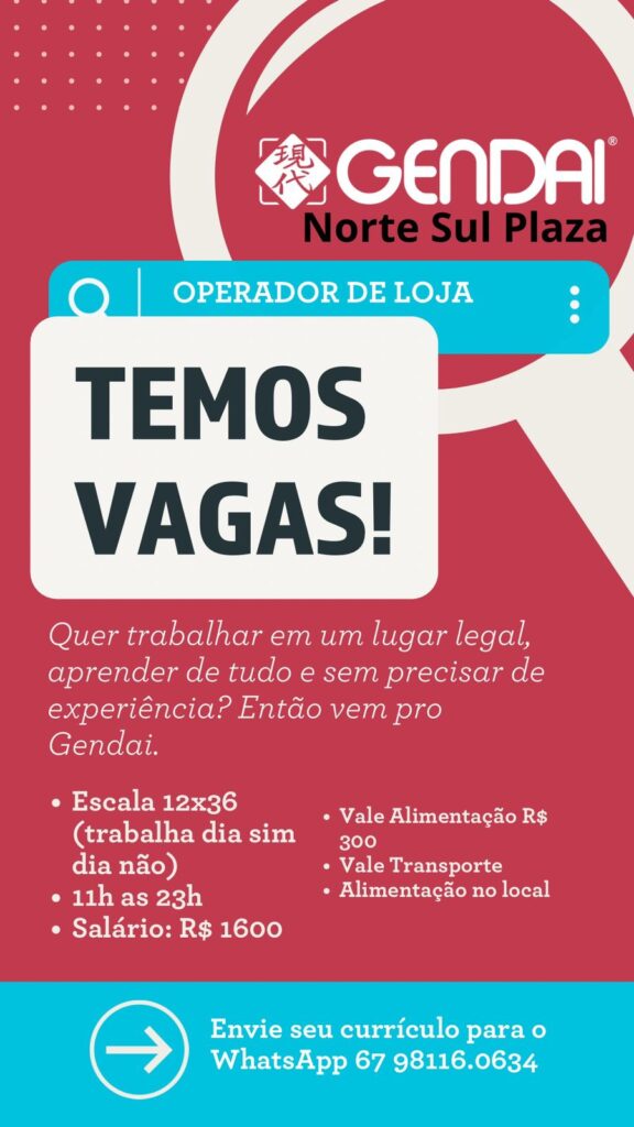 Operador de telemarketing, auxiliar, esteticistas, analista, promotor e consultor de vendas e muitas outras…confira as vagas selecionadas pelo Made In MS e boa sorte!!