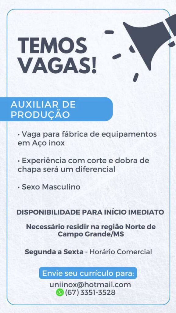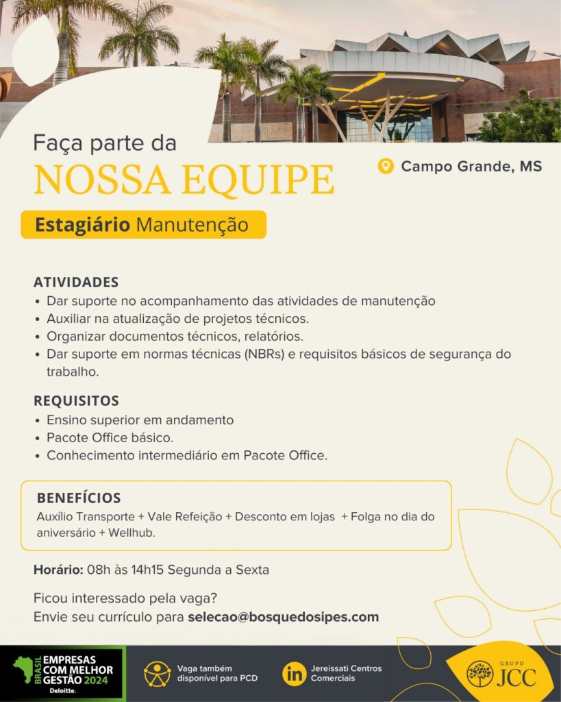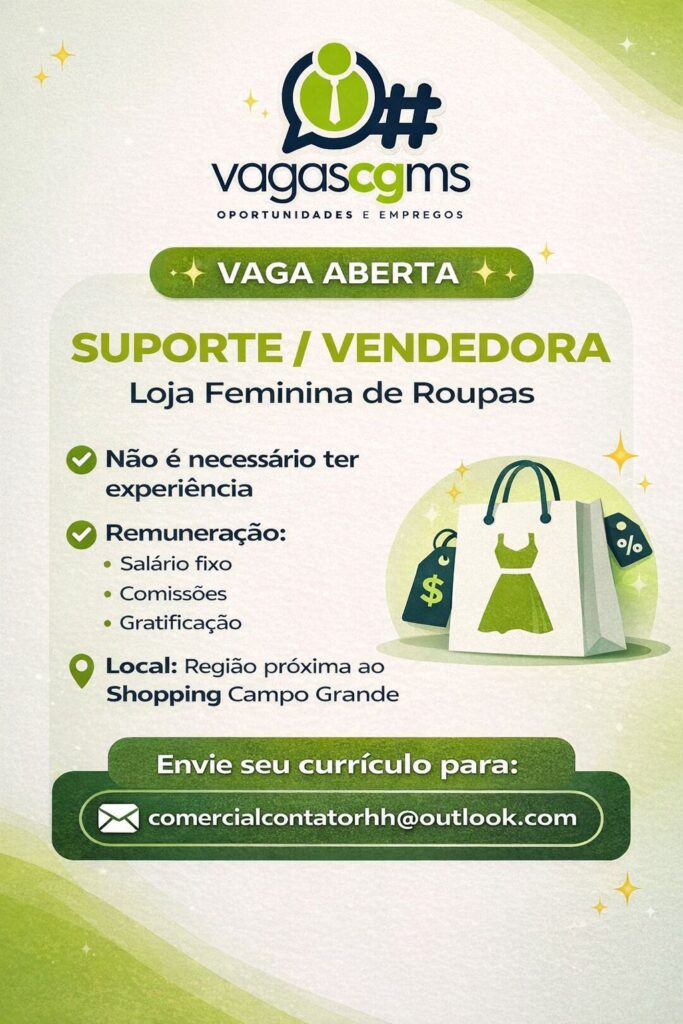 O Made In MS selecionou oportunidades, nas mais diversas áreas, em Campo Grande. Confira: