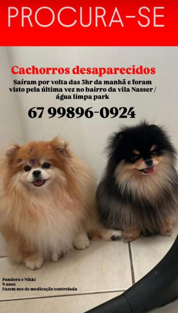 Uma moradora da Vila Nasser, em Campo Grande, usou as redes sociais para falar do sumiço dos seus animais de estimação nesse fim de semana.