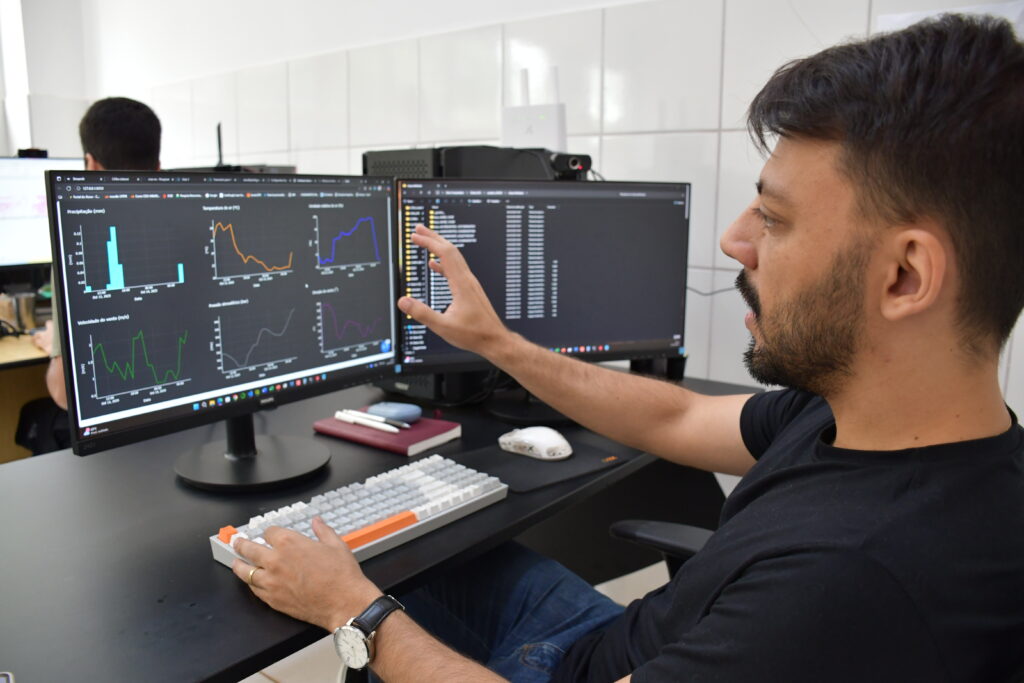 Dentro da rede de pesquisadores que atua no projeto, André Almagro monitora os dashboards que agregam dados quase em tempo real das unidades de monitoramento, como a estação meteorológica instalada no Parque dos Poderes. Os registros de precipitação, temperatura, umidade, vento e pressão são coletados a cada cinco minutos e enviados por satélite em uma banda da Agência Espacial Norte-Americana (NASA), de hora em hora, para atualização automática do painel.