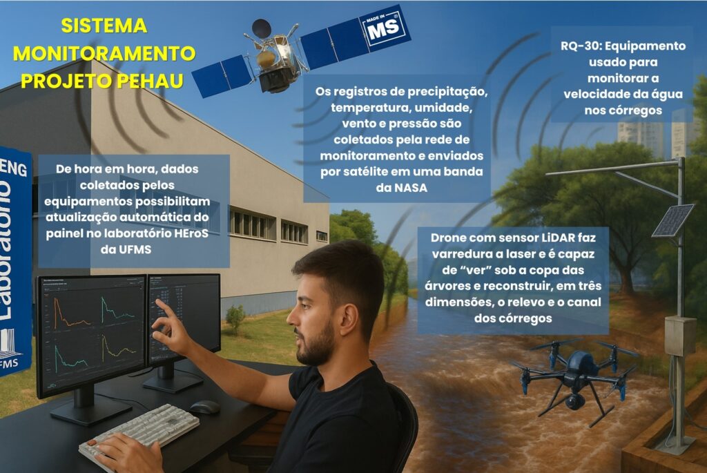 Nesse contexto, um grupo de pesquisadores da Universidade Federal de Mato Grosso do Sul (UFMS), em parceria com estudiosos de outras instituições e a prefeitura de Campo Grande, estrutura um sistema de monitoramento e alerta de cheias e inundações voltado às bacias urbanas da capital sul-mato-grossense.