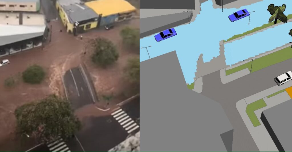 “Com isso, a gente consegue fazer uma modelagem hidrológica, uma representação do sistema real. Vou saber que quantidade de água de chuva que atinge, quanto vai virar vazão. E dessa vazão, depois, com o modelo hidráulico, eu sei quanto que isso vai extravasar da calha do rio e o que vai gerar a inundação.”