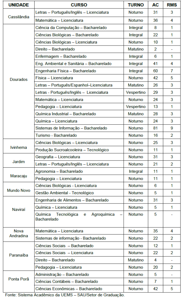 - As etapas serão divulgadas na página de cada curso de graduação no site oficial da UEMS